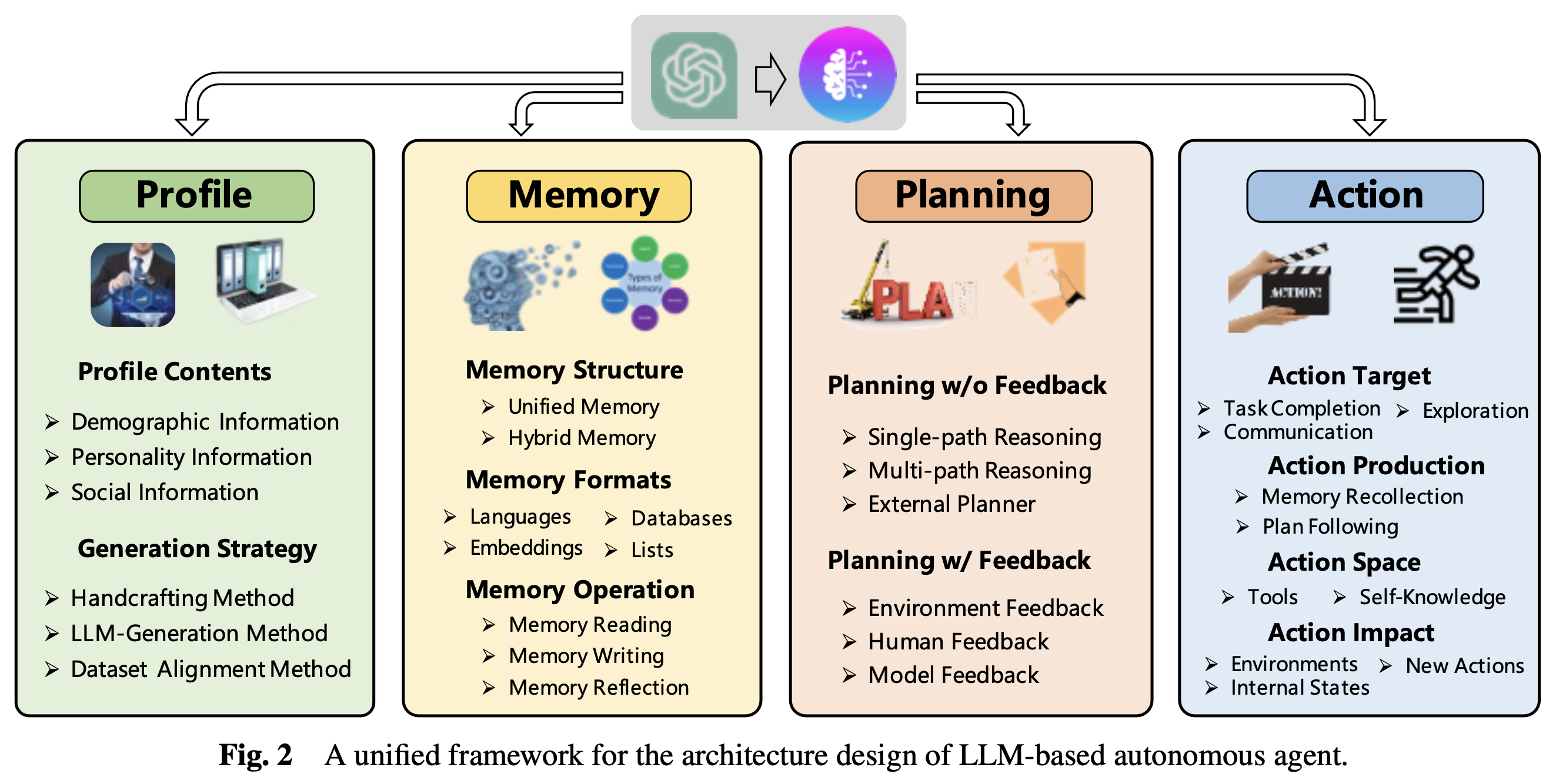 - Planning: 하위 목표를 설정하거나, 피드백 수집 및 개선을 위한 요소.